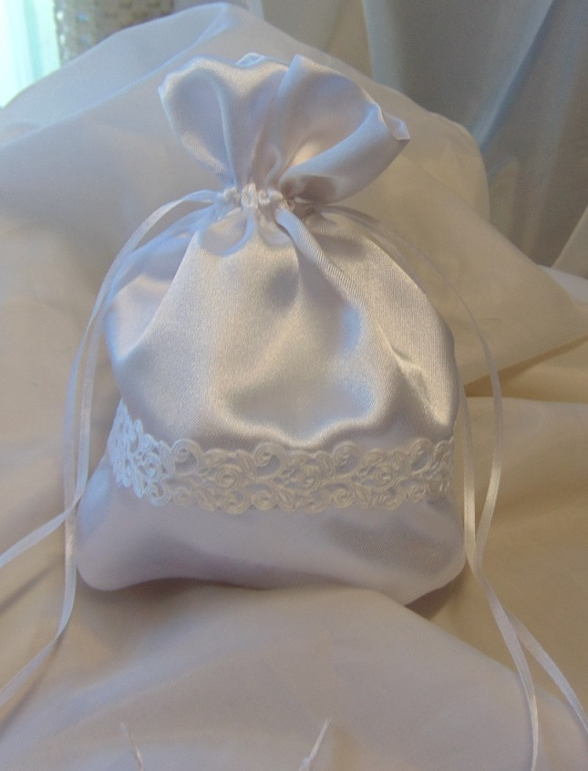 Esküvői kistáska fehér, csipkével (12x20cm)