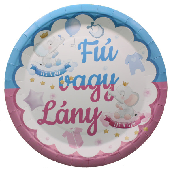 Fiú vagy lány papírtányér - 8 db (23 cm)