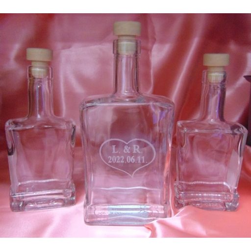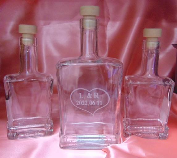 Gravírozott homokszóró szett monogrammal és dátummal.