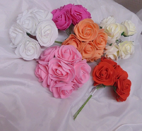 Habrózsa csokor drótos szárral (6 szálas) - 10 féle színben