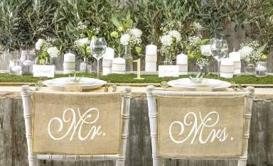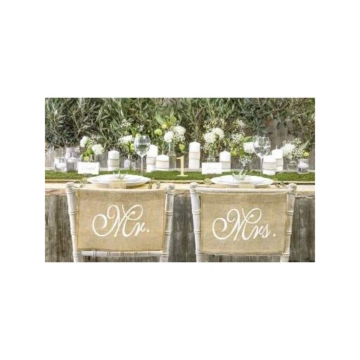 Juta széktámla dísz, Mr. és Mrs. felirattal - (ZNK3)