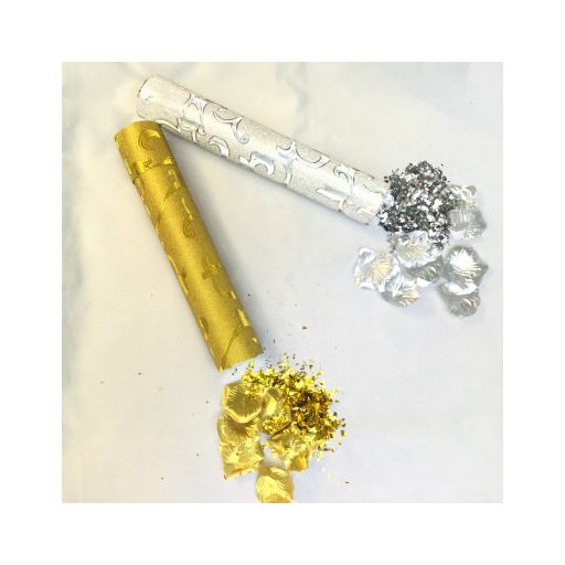 Konfetti ágyú arany vagy ezüst szirommal (30 cm)