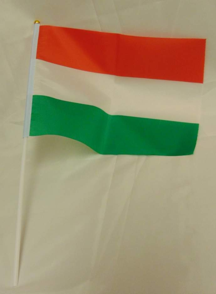 Magyar zászló, textil (15x20 cm), szár 30 cm