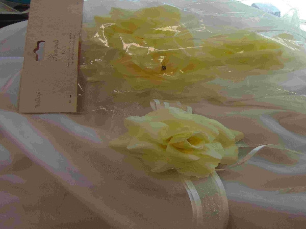 Ö ntapadós selyemvirág rózsadísz, szatén és organza szalaggal