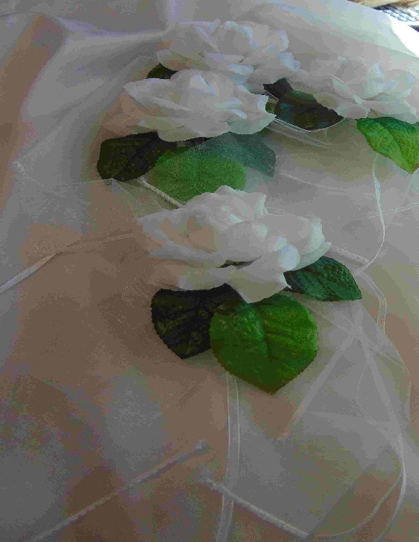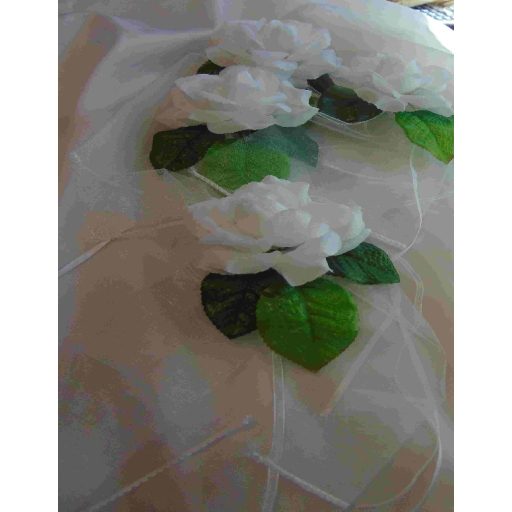 Ö ntapadós selyemvirág rózsadísz, szatén és organza szalaggal