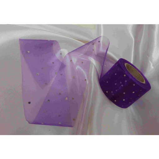 Organza szalag lila, pöttyös (3, 8 cm x 10 m)