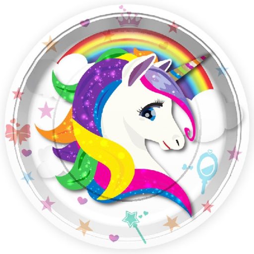 Unicornis, Unikornis papírtányér 23 cm-es (8 db) fehér