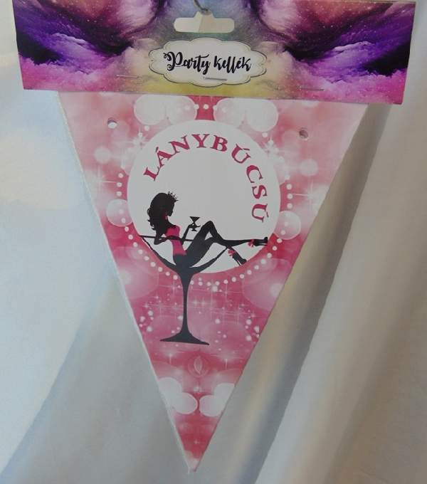 Zászlógirland lánybúcsúra, rózsaszín(8 db zászló+4 m szalag)