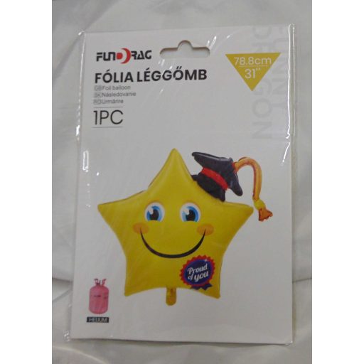 Ballagási fólia lufi, arany csillag, 78 cm - 645128