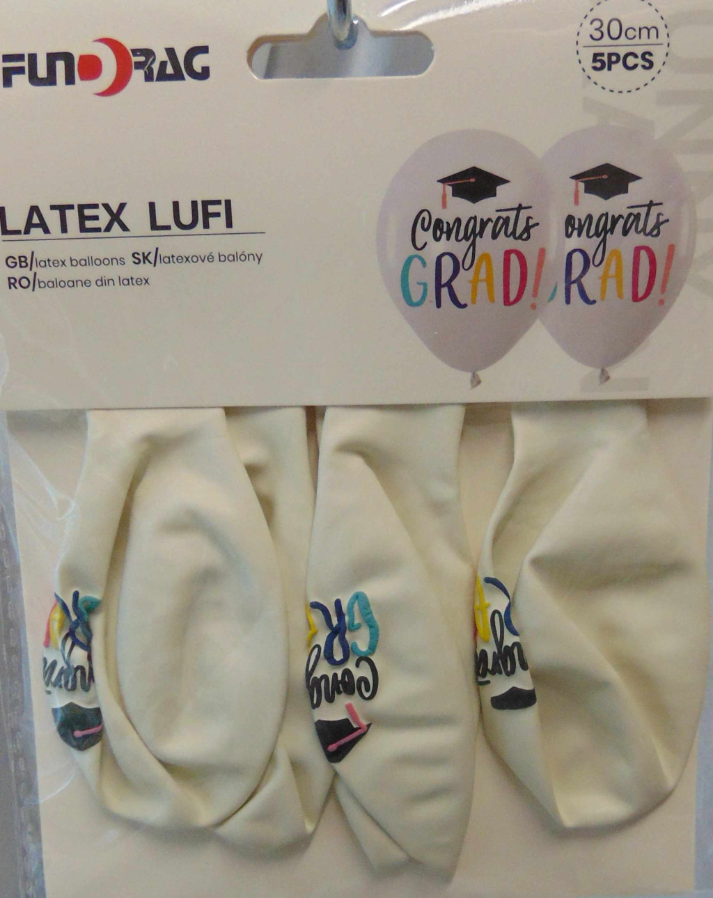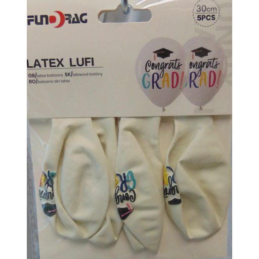 Ballagási gumi lufi (5 db), 30 cm-es, színes felirattal - 644794