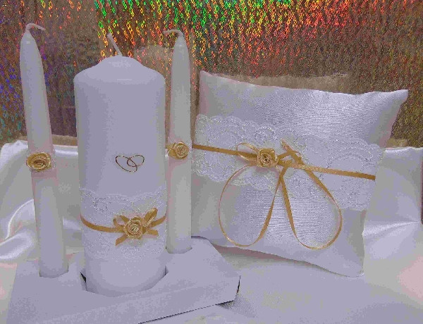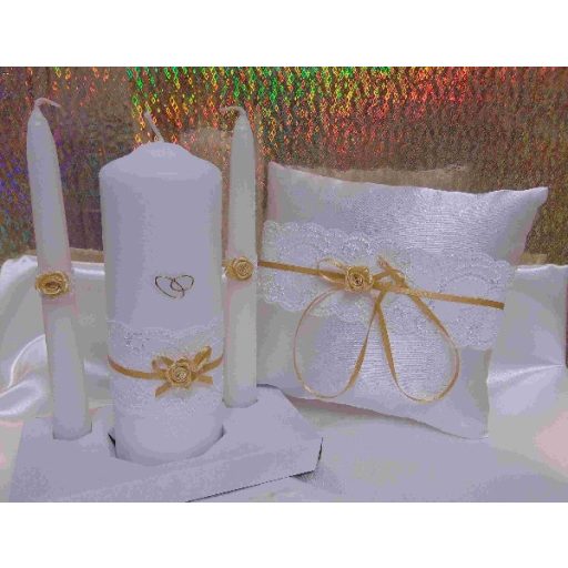 Esküvői gyertyaszett 3 részes, arany szalaggal