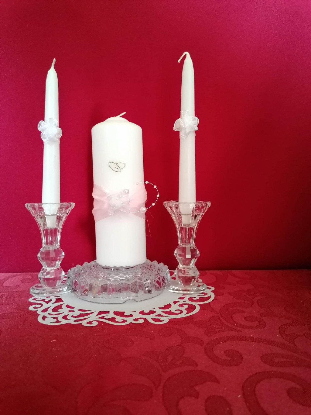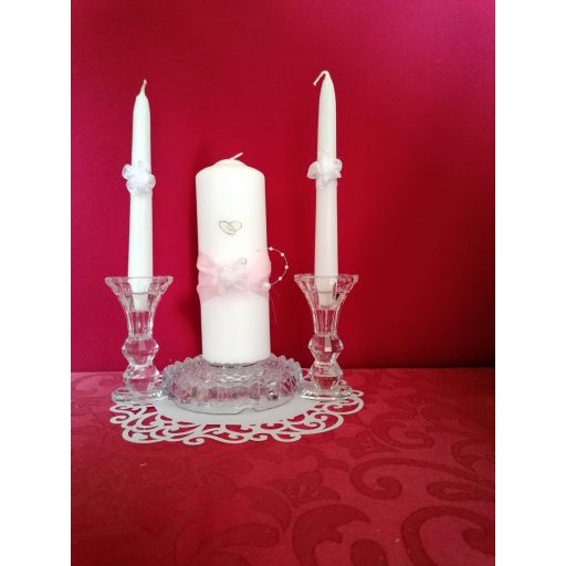 Esküvői gyertyaszett 3 részes, rózsaszín tollas