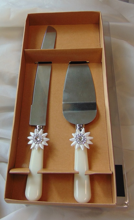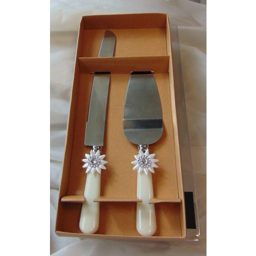 Esküvői tortaszett strasszos virággal (kés+lapát)
