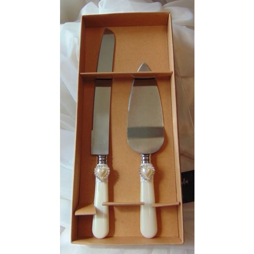 Esküvői tortaszett szivecskékkel (kés+lapát)