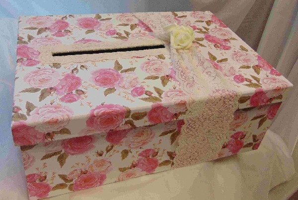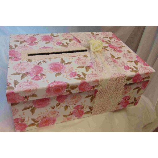 Nászajándékgyűjtő doboz, vintage, rózsás