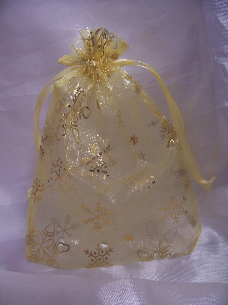 Organza tasak arany, csillagos (20x14 cm) - 24 db