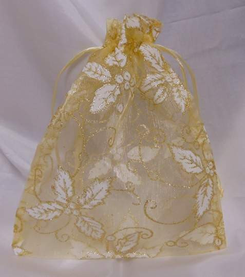 Organza tasak arany, fehér mintával (23x18cm) - 24 db