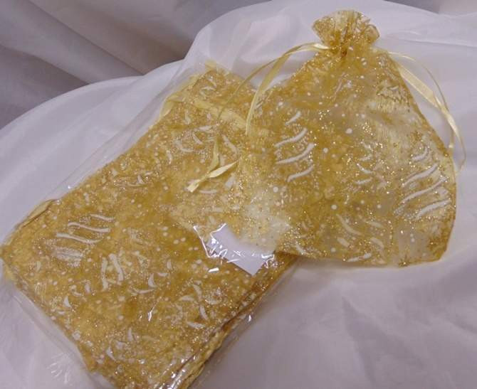 Organza tasak arany, mintával (20x14 cm) - 24 db