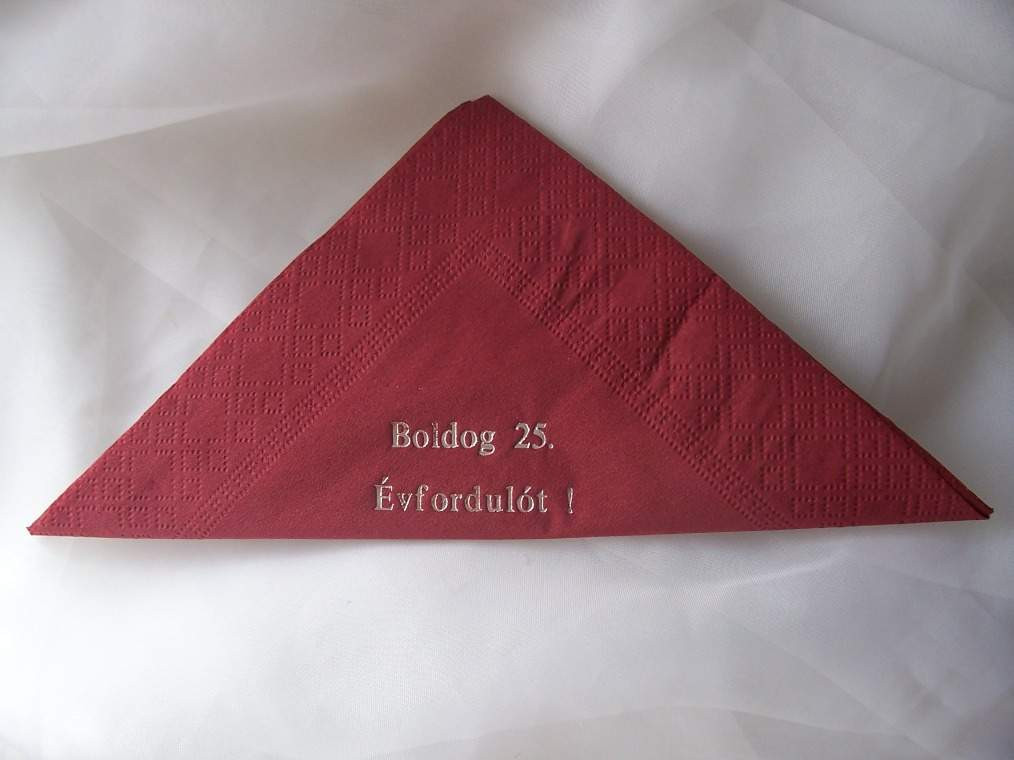 Boldog 25. évfordulót! szalvéta (12 db/cs) bordó vagy krém színben