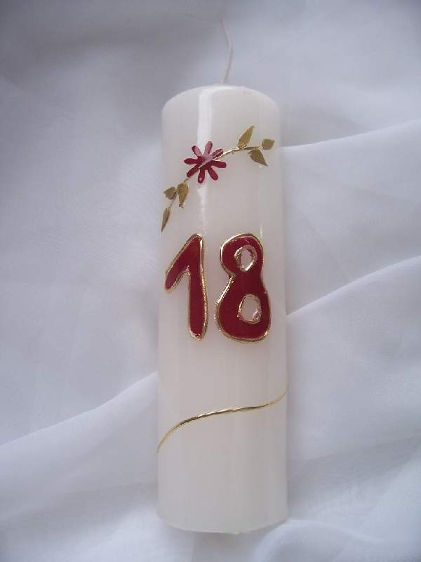 Évszámos gyertya 18, egyedi kézi munka (15 cm)