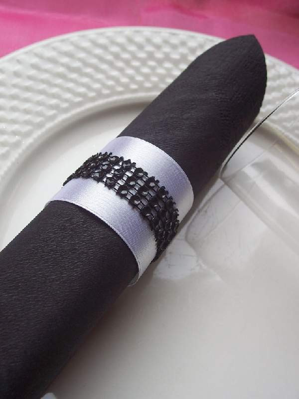 Strasszos szalvétagyűrű, fekete - fehér