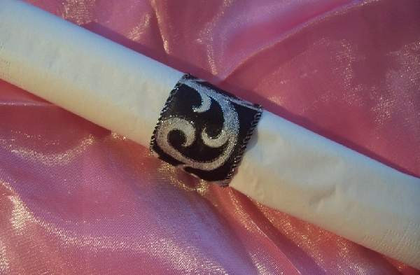 Szalvétagyűrű inda mintás, fekete - ezüst
