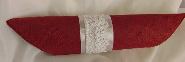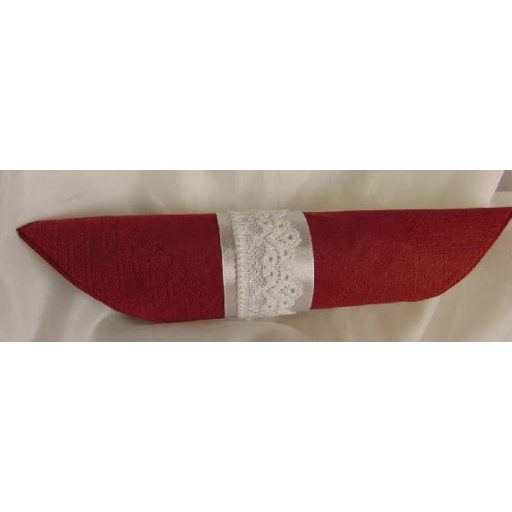 Szatén szalvétagyűrű csipkével, fehér