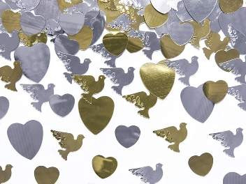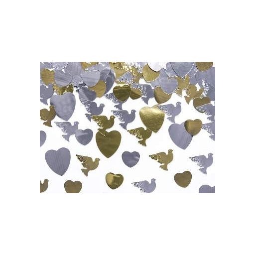 Szív - galamb konfetti arany, ezüst (14 gr)
