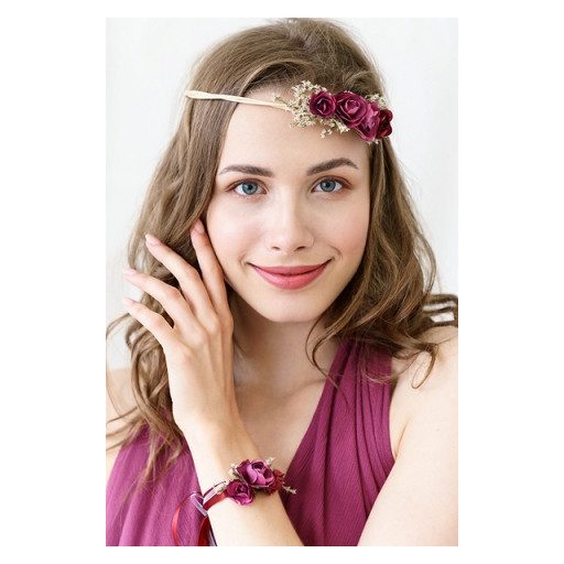 Vintage, virágos fejpánt, bordó(WIAN3)